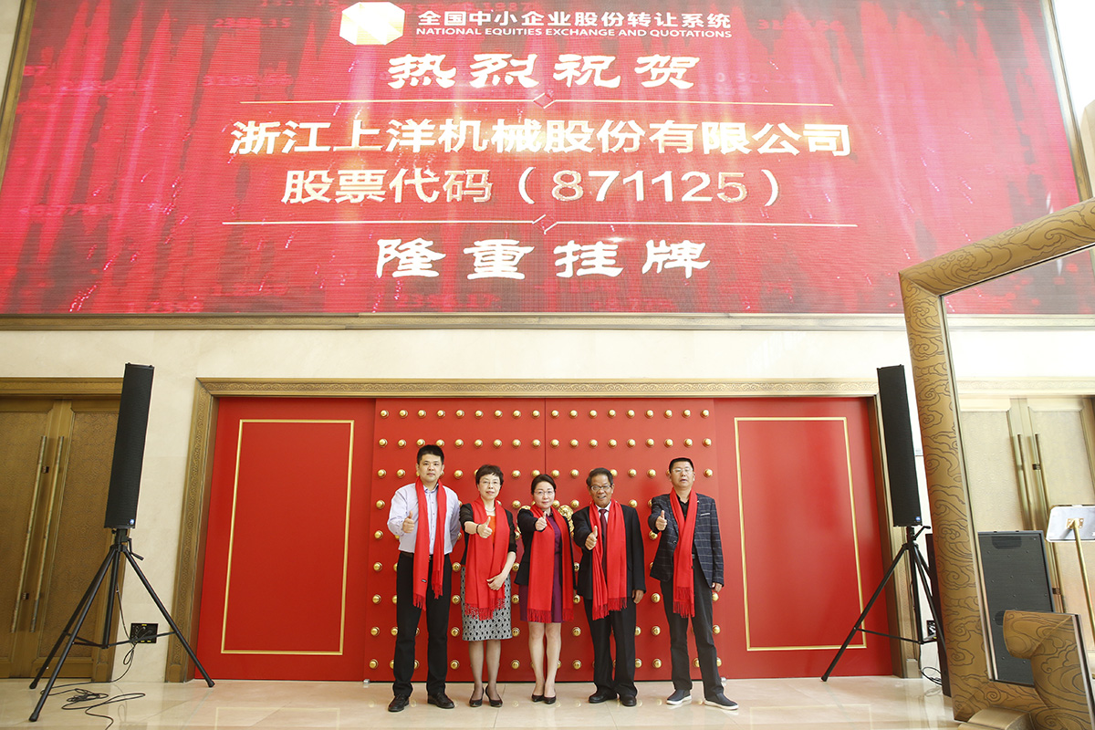 2017年2月27日,在全體上洋人的拼搏努力下,公司成功掛牌新三板(股票代碼871125),成為國內(nèi)茶機行業(yè)首家新三板掛牌企業(yè)。