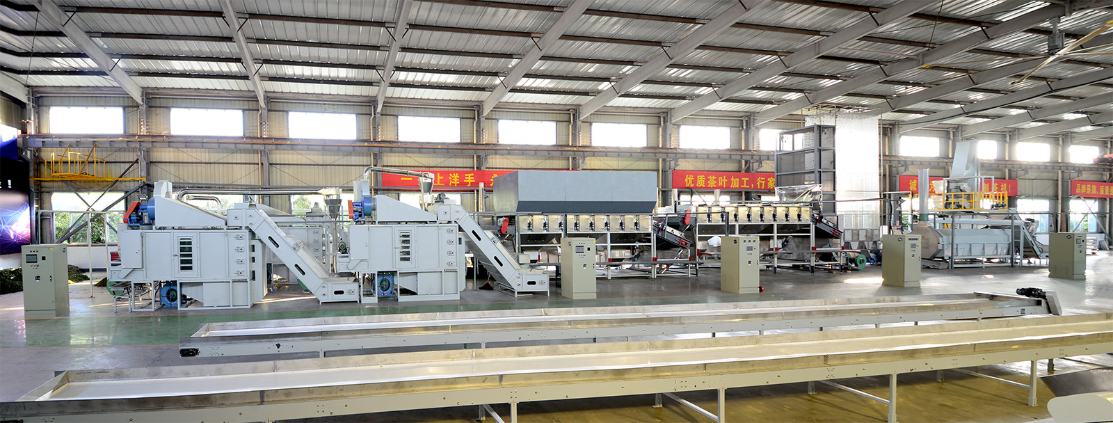 2005年,公司正式就“國家農(nóng)業(yè)部948項目——烘炒青綠茶初制加工清潔化流水生產(chǎn)線”和安徽農(nóng)業(yè)大學簽約,標志著茶葉加工從單機生產(chǎn)正式邁向清潔化流水線生產(chǎn),是茶產(chǎn)業(yè)的一次重大變革。