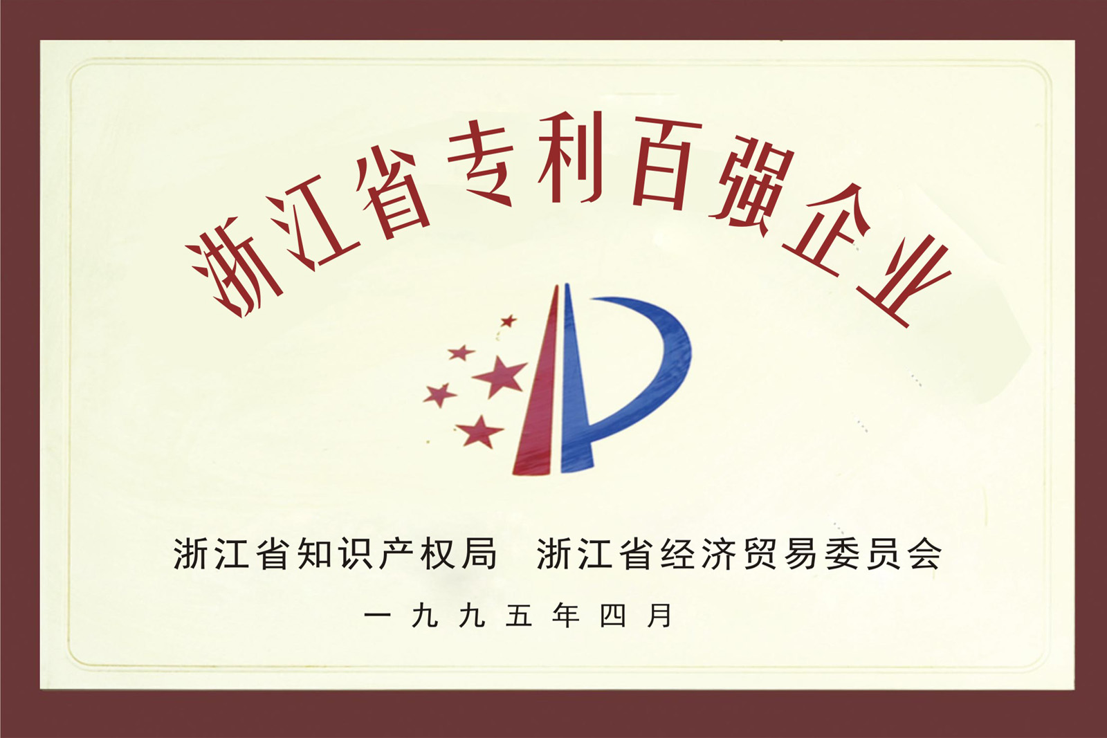 1995年4月,公司被評為浙江省專利百強企。