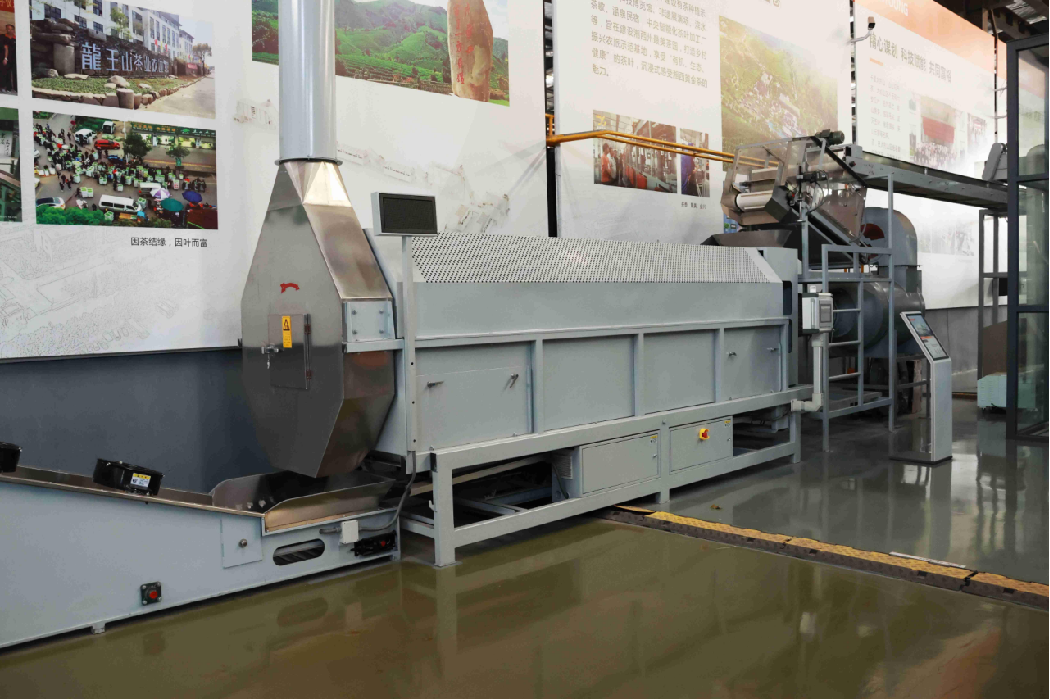 作業(yè)原理:機(jī)組運(yùn)用自主發(fā)明的核心專利技術(shù),遵循“透氣不悶”的制茶原理,茶葉在筒體內(nèi)處于旋轉(zhuǎn)拋撒狀態(tài),熱風(fēng)充分接觸,受熱均勻,水份散發(fā)快、透氣性好,可連續(xù)完成茶葉的初脫水工藝流程。